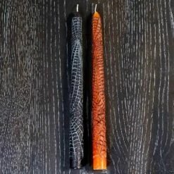 Create a haunted house effect with these Halloween Taper Candles or Candleholders. The Set of 2 Candles features creepy designs. Each candle looks great in the Small Claw Taper Candleholder or the Large Claw Taper Candleholder. Set of 2 Candles 10″L, eachParaffin wax Small Claw Candleholder 5-1/4″W x 3-1/4″D x 4-1/4″HCast iron Large Claw Candleholder5-1/2″W x 5″D x 5-7/8″HCast iron