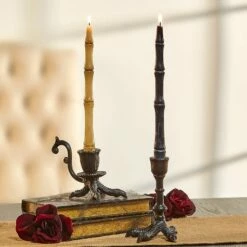 Create a haunted house effect with these Halloween Taper Candles or Candleholders. The Set of 2 Candles features creepy designs. Each candle looks great in the Small Claw Taper Candleholder or the Large Claw Taper Candleholder. Set of 2 Candles 10″L, eachParaffin wax Small Claw Candleholder 5-1/4″W x 3-1/4″D x 4-1/4″HCast iron Large Claw Candleholder5-1/2″W x 5″D x 5-7/8″HCast iron