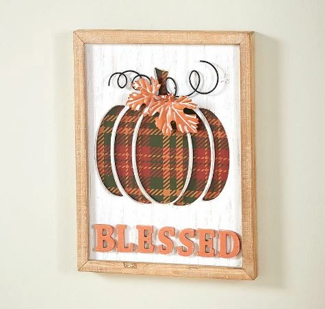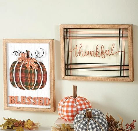 Bring a fall feel to any room with this Harvest Plaid Accent Wall Decor. Each plaque features a single word sentiment and a plaid detail. Made from: MDF and metalMeasurements: Thankful, 16-1/8″W x 12″LBlessed, 11-7/8″W x 15-3/4″L