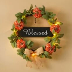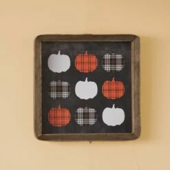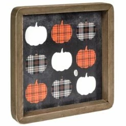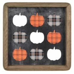 Decorate your home for the fall season with this fun and festive Harvest Plaid Decor. Drape the Garland along the front of the mantel, around a door frame or on a staircase handrail. The Tabletop Sign features 9 patterned pumpkins. The lighted Wreath can also be hung on any interior door or wall and comes with 3 interchageable signs. The set of 4 Harvest Decals can be grouped together or scattered around a room for a decorative touch. Garland72″LPolyesterRequires 3 “AA” batteries4-Pc. Wreath Set18″ dia.Signs, 12″W x 3-1/4″L, each Rattan, polyester and polyfoamRequires 3 “AA” batteriesHarvest Decals4 Sheets, 9″W x 17-1/4″L, eachVinyl Tabletop Sign8″ x 8″MDF