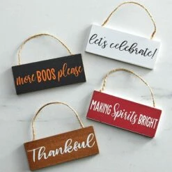 Put out the red plastic party cups at your next gathering in this Interchangeable Party Cup Holder. Most standard size cups stack neatly in this wooden holder. Comes with two double-sided signs: Making spirits bright/Let’s celebrate and More boos please/Thankful. Has a spot for holding your own marker. Made from:MDFMeasurements:5-1/2″ sq. x 2-1/2″HNotes:Marker not included