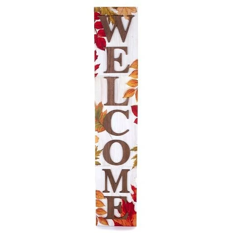 Welcome fall and its beautiful colors with the Leaves Are Falling, Autumn Is Calling Collection. Start at your front porch with the Lighted Garland, featuring 30 warm white LED lights and a timer, draped around your door or porch railing and add pillows to a chair or bench. Add a coordinating Lighted Swag or two. Lean the Welcome Sign against a wall of your home. Position the Tree nearby. It lights up with 96 warm white LED lights and has a timer. Finish the look with one of the accent pillows. Lighted GarlandRequires 3 “AA” batteries118″LPolyester and polyethyleneLighted SwagRequires 2 “AA” batteries13″W x 5″D x 23″HWicker, polyester and PVCWelcome Sign10″W x 48″LMDFHanging hardware includedTreeRequires 3 “AA” batteries25″ dia. x 43″HPolyester, metal, polypropylene and polyethyleneAssembly required; assembly hardware includedShaped Fall PillowAcorn, 15″ x 17″Leaf, 17″ x 17″Polyester with polyfillImportedI Love Fall Pillow17″ sq.Polyester with polyfillImported
