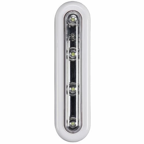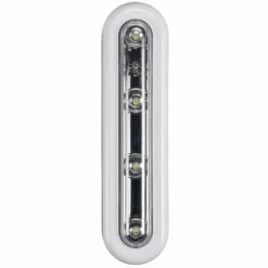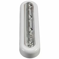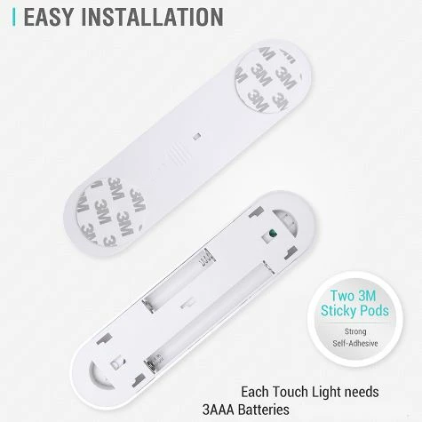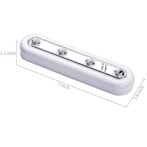 Have light where you need it with this LED Touch Light with Adhesive. It securely adheres to any wall or shelf and lights up when pressed. Uses LEDs for energy savings. Made from:ABS plasticMeasurements:7″W x 2″D x 1-1/4″HNotes:Requires 3 “AAA” batteries