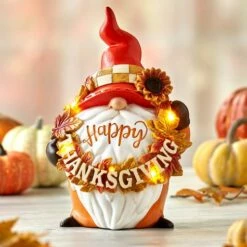 Decorate for the season in a cute way with this Lighted Color-Changing Holiday Gnome. When turned on, the wreath around the gnome lights up in flashing lights. Christmas changes color in shades of green, blue, red and purple. Halloween and Thanksgiving change color through shades of green, blue, red and yellow. Display it on a mantel, shelf or table. Made from:Cold cast ceramicMeasurements:7-1/4″W x 6-1/8″D x 11″HNotes:Requires 3 “AAA” batteries