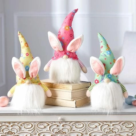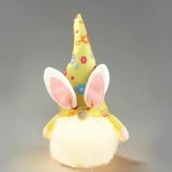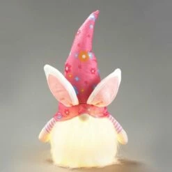 Add a bit of fun to your home with this Lighted Easter Gnome. It glows with soft LED light and has a fluffy beard and bunny ears sticking out of its hat. Cordless and battery operated, it can be placed anywhere in your home. Order several to put in your kids’ Easter baskets, set on your dining table or scatter around a room. Made from: Wool and polyesterMeasurements: 7-3/4″ dia. x 14-1/2″HNotes: Requires 3 “AA” batteries