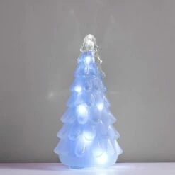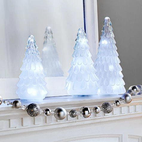 This Lighted Glass Tree is a beautiful decor piece to decorate your mantel, entryway table, side table or any flat surface. It’s made of frosted glass and lights up from within. Made from: Frosted glassMeasurements: 8″ Tree, 4-1/4″ dia. x 8-1/2″H10″ Tree, 5″ dia. x 10-1/2″H12″ Tree, 6″ dia. x 12-1/2″HNotes: Requires 3 “AAA” batteries