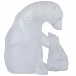 Put your love for animals on display with these Lighted Polar Bears. The statue depicts a mother polar bear sitting with her baby. They have opaque, frosted-look bodies that are glittered to suggest snow and light up from within. Made from:PolypropyleneMeasurements:7-1/4″W x 6-1/2″D x 4-3/4″HNotes:Requires 2 “AA” batteries