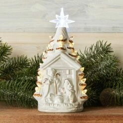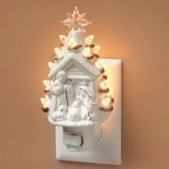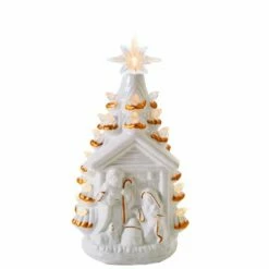 Show your spirituality by the way you decorate your home during the holidays. The Lighted Spiritual Accents collection features decor items with a Nativity theme. It includes a Ornament, Bubble Night Light, Small Retro Tree, Tabletop Decorations (Faith Tree and Joy Star), Large Retro Tree and Nativity Wreath. OrnamentRequires 3 button-cell batteries 2-5/8″W x 2-1/4″D x 4″HDolomite, plastic and metalBubble Night LightOn/off switch9-1/2″W x 2-1/2″D x 7-1/2″HDolomite, plastic and metal Small Retro TreeRequires 2 “AA” batteries 4″ dia. x 7-1/2″HDolomite, plastic and metalTabletop DecorationsRequires 3 button-cell batteriesFaith Tree, 5-1/2″W x 1-1/2″D x 6-1/2″HJoy Star, 5-3/4″W x 1-1/2″D x 6″HCeramicLarge Retro TreeRequires 3 “AA” batteries6-1/2″W x 5-1/2″D x 13″HCeramicNativity WreathRequires 3 “AAA” batteries18″ dia. x 5″DGrapevine, plastic, resin, polyfoam and metal