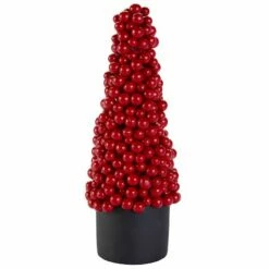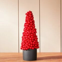 Add a splash of vibrant red to any room of your home with this Merry Berry Tabletop Tree. The color alone will give this decor item the feel of Christmas. Looks great on your mantel, entryway table or dining table! Made from:Foam, plaster, metal and rattanMeasurements:12″ Tree, 4″ dia. x 12″H14″ Tree, 5″ dia. x 14-3/4″H