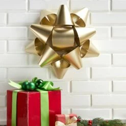 Decorate a wall of your home with this Metal Hanging Bow. It resembles the bow you’d find on a gift wrapped package–only oversized. Has a flat back with hanging hardware. Made from: MetalMeasurements: 14″W x 4-5/8″D x 13-5/8″H