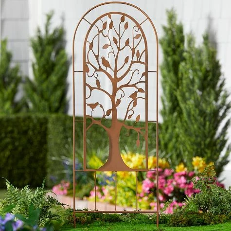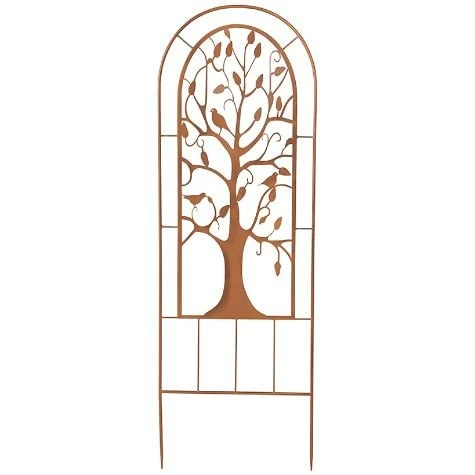 Plant this eye-catching Metal Tree Wall Stake in your yard and enjoy it throughout the changing seasons. The laser-cut tree design features a matte light brown finish with an abundance of branches, birds and leaves. This versatile piece gives a stand-alone decor option for any space: mark an entrance, frame an area between landscaping or highlight a special space in your patio. Made from:MetalMeasurements:15-7/8″W x 3/8″D x 46-7/8″L, including the 8″ ground stake