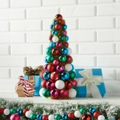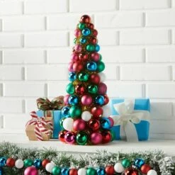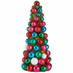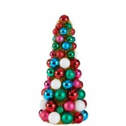 Add a pop of color to any spot in your home with this decorative Ornament Tree. A combination of shiny and matte ornaments in non-traditional Christmas colors are arranged in the shape of a tree. Bright, colorful and oh, so modern! Made from: PlasticMeasurements:16″ Tree, 7-1/2″ dia. x 16-1/4″H18″ Tree, 8″ dia. x 17-5/8″H