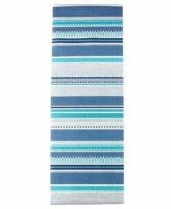Cushion footsteps on your porch or patio with this Outdoor Decorative Rug Collection. The Blue Stripe rugs feature a repeating pattern of blue and gray stripes across the entire rug. The Gray Mosaic rugs feature an intricate design in the center with a border around it. Each rug features nonslip PVC backing. Runner and Area Rug cannot be shipped to P.O. boxes and APO/FPO boxes. Made from: Polyester and PVCMeasurements: Accent Rug, 1 ft. 10 in. x 3 ft. 3-1/2 in.Runner, 1 ft. 10 in. x 6 ft. Area Rug, 4 ft. 11 in. x 6 ft. 7 in.Notes: Imported