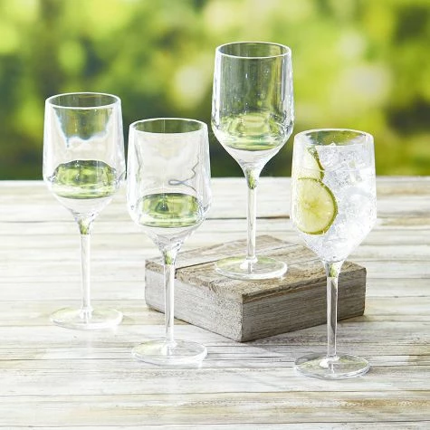 This Outdoor Drinkware is perfect for using at barbeques or by the poolside. Made of break-resistant acrylic for worry-free use, but still looks beautiful on tabletops. Set of 4 Double Old Fashioned Cups10 oz., eachAcrylic Top rack dishwasher safeSet of 4 Wine Glasses 8 oz., each Acrylic Top rack dishwasher safeSet of 4 Tumblers 20 oz., eachAcrylic Top rack dishwasher safe