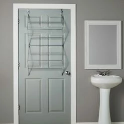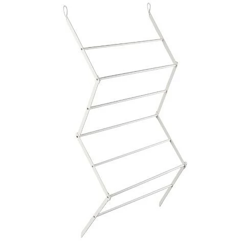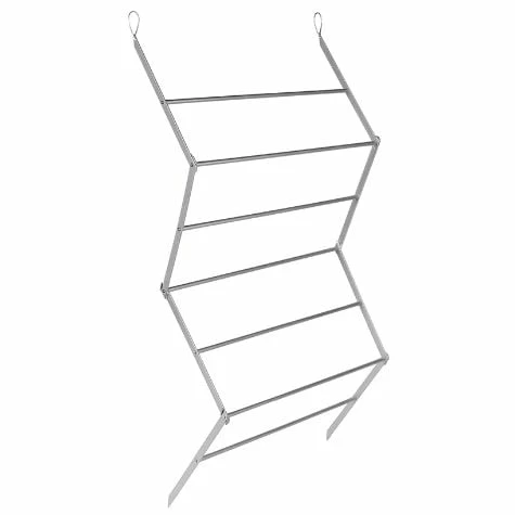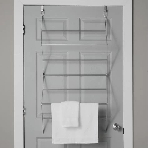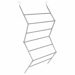 Dry towels on this Over-the-Door Towel Rack. It features seven bars for hanging towels or special care laundry. Has a geometric design that gives it a sleek and modern look. Comes with two hooks (1/2″W x 2-1/4″D x 3″H, each) for hanging it over the door. Made from: IronMeasurements: 23″W x 6-1/2″D x 47″HNotes: Assembly required; assembly hardware included