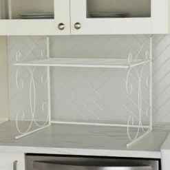 Reclaim the countertop space that your microwave now occupies with this Over the Microwave Shelf. Use it to hold dishes, pots, bottles, condiments and more. Fits over most microwaves. Made from: MetalMeasurements: 20-1/2″W x 14-1/2″D x 18″HNotes:Assembly required; assembly hardware included