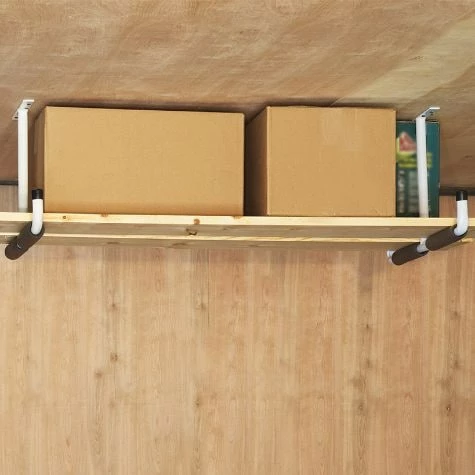 Save space by hanging items on this Overhead Bar. It’s great for the basement, garage, attic or anywhere you need more storage space. Features sturdy T-shaped steel bars with foam padding and cap cushions to prevent slipping and scratching. Great for tools, hoses and more! Made from: Metal and foam Measurements: 16-1/2″W x 1″D x 11-1/2″HNotes: Assembly required; assembly hardware included