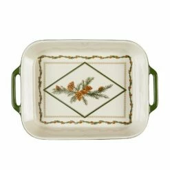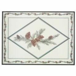 Give your kitchen a coordinated look with this Pine Cone Kitchen Collection. All the pieces feature an elegant pine cone design in soft, neutral tones. Dishwasher Magnet23″W x 17″LNot for use on stainless steelKitchen Rug29-1/4″ x 17-1/2″PolyesterMachine wash and line dryImportedSet of 2 Towels28″ x 17″, eachPolyesterMachine wash and line dryImportedBaker13-1/2″W x 9″D x 2-1/2″HCeramicOven and dishwasher safe
