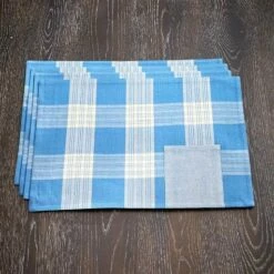 Add farmhouse flair to your table setting with this Plaid Table Runner or Placemats. The Table Runner features a solid-colored center with a plaid border. The Set of 4 Placemats with Pocket has an all-over plaid pattern. Each placemat features a silverware pocket that’s a lighter solid color. Made from: CottonMeasurements: Table Runner, 13″W x 72″LSet of 4 Placemats, 19″W x 13″L, eachCare: Machine careNotes: Imported