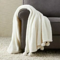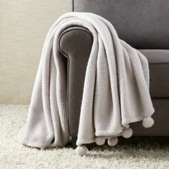 Give any room a cozy feel with this Pom-Pom Sherpa Throw. Made of a super-soft material, it features 12 decorative pom-poms along the ends. Made from: PolyesterMeasurements: 48″ x 60″Care: Machine careNotes: Imported