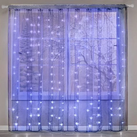 Add a touch of sparkle to a window with this Pre-Lit Window Curtain. Plug into a USB port to light up the sheer curtain. Each panel is sold individually. Order two for the look shown. Made from: Polyester and plasticMeasurements:63″ Curtain, 54″W x 63″L84″ Curtain, 54″W x 84″LNotes: Imported