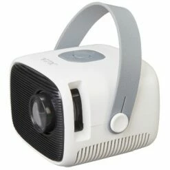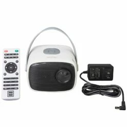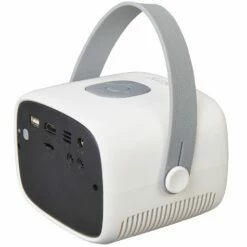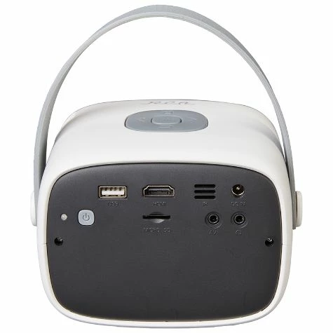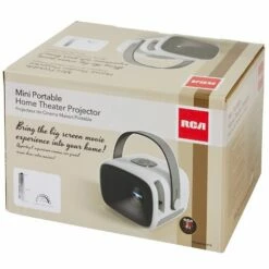 Stream your favorite media on with this RCA Retro 5″ Projector. It delivers sharp images and true-to-life colors in up to 100″ picture size. HDMI connects to multiple devices and streaming services. Features built-in speaker, LCD display, 40 lumens. Also includes USB, micro SD, earphone and AV in/DC. Projection distance, approx. 30″ to 116-1/2″. Comes with power adapter and remote. Made from:Plastic, EVA and metalMeasurements:5-5/8″ x 4-5/8″ x 4″