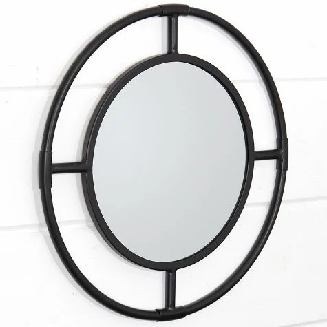 Accent any wall with this simple but chic Round Metal Wall Mirror. The unique design features 4 points that meet in the middle to center the mirror. Perfect for everyday use, it also looks stylish year ’round. Made from:Metal and glassMeasurements:16-1/8″ dia.Notes:Ready to hang