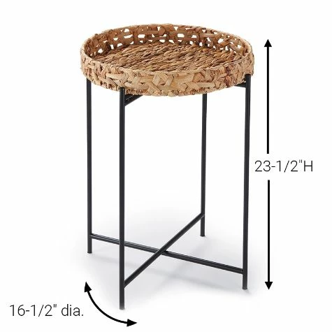 Entertaining is easy with this versatile Seagrass Tray Side Table. The tabletop can be removed and used as a serving tray. The leg frame is foldable when not in use. Made from:Seagrass and metalMeasurements:16-1/2″ dia. x 23-1/2″H, overallTabletop, 16-1/2″ dia. x 2-1/2″HNotes:Assembly required; assembly hardware included