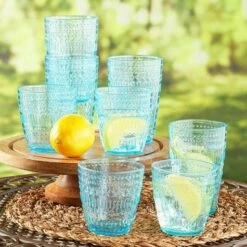 | option | Blue Double Old Fashioned Cups, Clear Double Old Fashioned Cups, Blue Set of 4 Tumblers, Clear Set of 4 Tumblers, Set of 4 Blue Melamine Bowls, Set of 4 Green Melamine Salad Plates, Set of 4 Blue Melamine Dinner Plates |