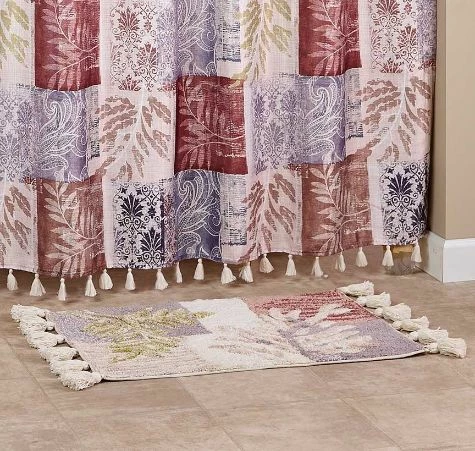 Bring a sense of tranquility to your bathroom with the soft, muted tones of the Serenity Bath Collection. The Shower Curtain serves as the focal point of the collection. Hang it using the Set of 12 Shower Hooks. The Bath Rug has latex backing for slip resistance and tassels for a decorative touch. Sink accessories, a Toothbrush Holder and Soap/Lotion Pump, are also part of the collection. Shower Curtain 72″ sq. CottonMachine careImportedRug20″ x 30″Cotton and latex backingMachine wash and line dryImportedSet of 12 Shower Hooks1-1/8″W x 2″D x 2-1/2″H, eachCold cast ceramic Toothbrush Holder2-1/4″W x 4-1/8″D x 4-1/2″HCold cast ceramicSoap/Lotion Pump4″ dia. x 8″HCold cast ceramic