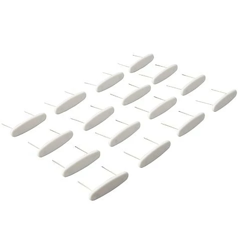 Keep your bedskirt from slipping around with this Set of 16 Bedskirt Pins. They come in a set of 16 to best suit any size mattress. Made from:Plastic and metal Measurements:1-1/4″W x 2″L, each