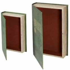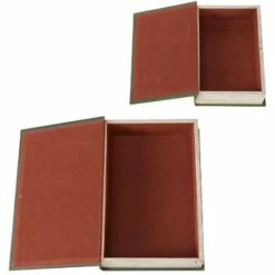 Store important documents or office supplies inside this Set of 2 Book Boxes, storage solutions that do double duty as decor items. They’re perfect additions to the book shelves in your home or office. Made from: MDF and polyurethaneSet includes:- Medium, 6-3/4″W x 2″D x 10-1/4″H- Large, 8-5/8″W x 2-3/4″D x 13″H