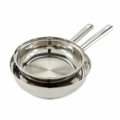 This Set of 2 Stainless Steel Frying Pans is a great addition to any kitchen. Their stainless steel construction offers even heating and stain resistance. Made from: Stainless steelSet includes: – 8-1/2″ dia. pan – 10″ dia. panNotes: Dishwasher and oven safe