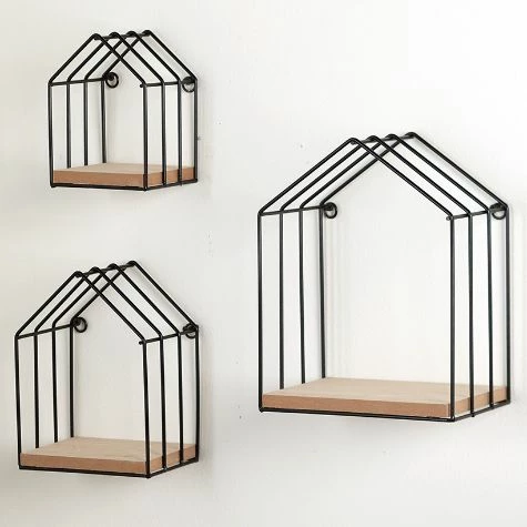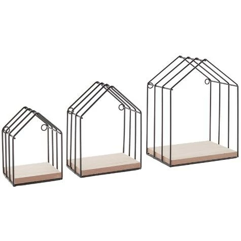 Add storage and decor with this Set of 3 Farmhouse Accent Shelves. The metal-shaped houses create a country vibe. Each shelf is sturdy enough to hold a small plant or decorative item. Made from:Metal and MDFSet includes:- 4-3/8″W x 4″D x 6″H- 6″W x 4″D x 8″H- 7-7/8”W x 5″D x 10″HNotes:Easy assembly required