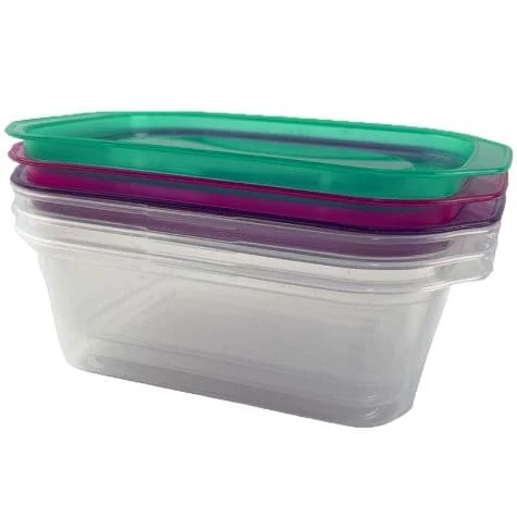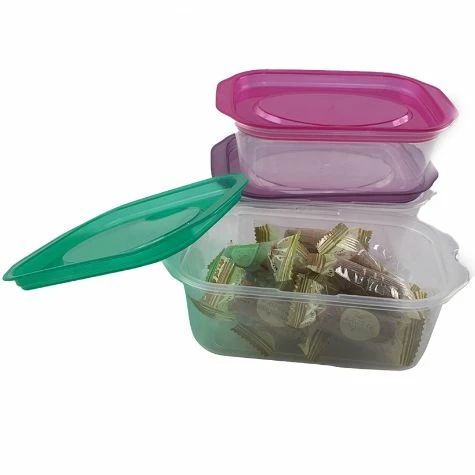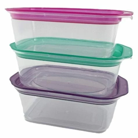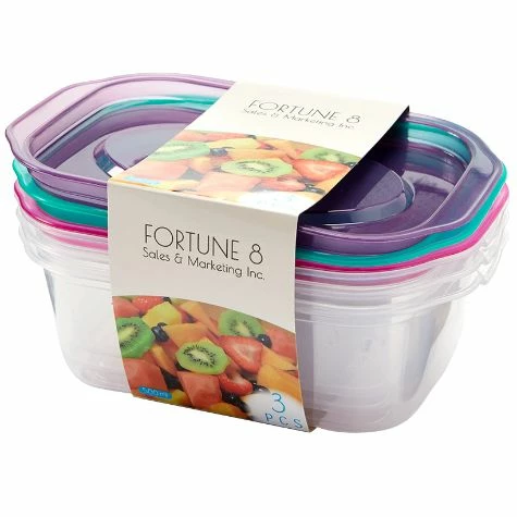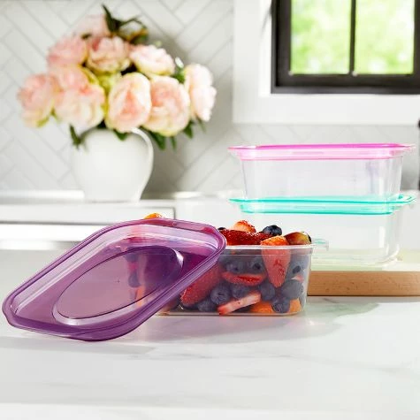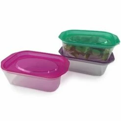 Store prepped foods, leftovers and more in the Set of 3 Food Storage Containers with Lids. Each see-through container has a colored lid for easy visibility. Space-saving set is stackable, so it won’t eat up a lot of space in your pantry or fridge. Made from:PolypropyleneMeasurements:6-1/4″W x 4-1/4″D x 2″H, eachCare:Dishwasher safe