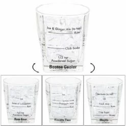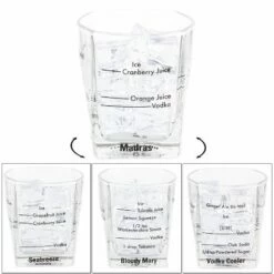 Practice your mixology skills using this Set of 4 Bartending Glasses. Each glass features a different spirit and is printed with the recipes for making 4 different cocktails with that spirit. Learn how to make drinks such a Mojito, Bloody Mary, Whiskey Fix, Salty Dog and more. Made from: GlassMeasurements: 8 oz.