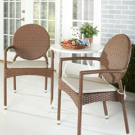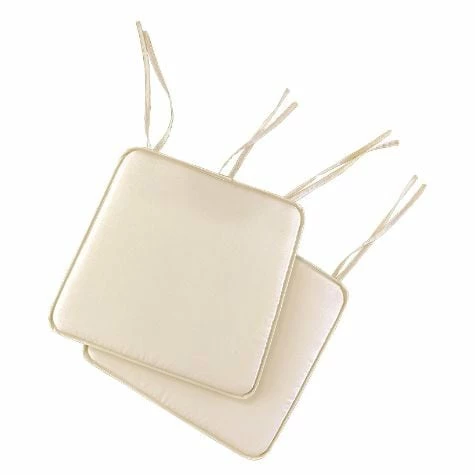 Get your backyard or porch ready for warm weather with a Set of 2 Indoor/Outdoor Bistro Chair Pads. Each pad has ties to secure it to the chair. Weather resistant. Made from: Polyester with polyfillMeasurements: 17″W x 15-1/2″L, eachNotes: Imported