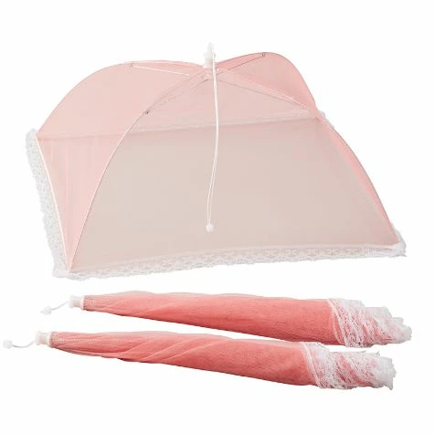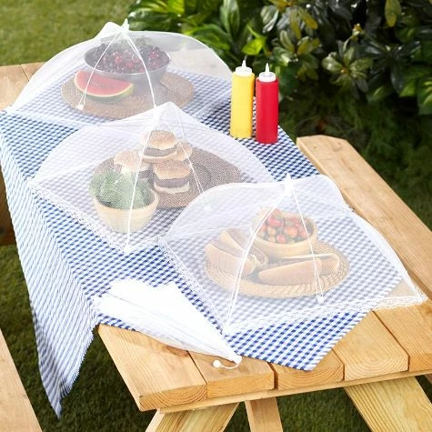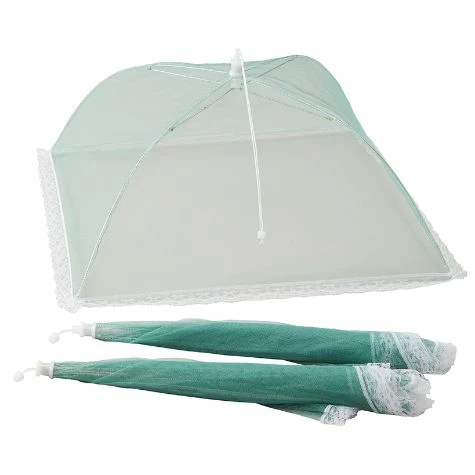 Keep insects off your food when you’re eating outdoors with this Set of 3 Mesh Food Covers. Each cover is large enough to protect a few dishes of different sizes. Opens easily with just a pull of the string. Made from:Polyester and stainless steelMeasurements:17-1/2″ sq. x 9-1/4″H, each, open
