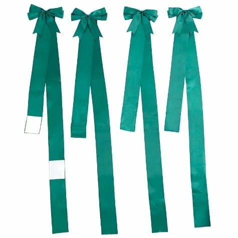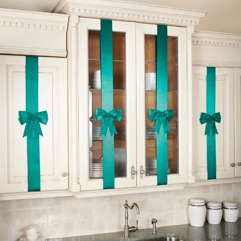 Use the Set of 4 Cabinet Bows to spruce up your kitchen for the holidays. Each is easy to wrap around the door and has a fabric-magic closure for adjustability. Fits cabinets from 2 ft. 4-3/4 in. to 3 ft. 1-5/8 in. long. A lovely 9 in. bow is sewn 4 ft. 4 in. from the top of the ribbon. Made from: PolyesterMeasurements: 3-1/2 in. wide x 6 ft. 4-3/4 in. long, laid flat, eachNotes: Imported