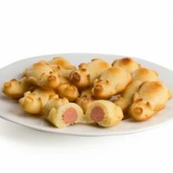 Bake up delicious snacks with this Shark Bites or Pigs in a Blanket Silicone Mold. Pancake batter and mini franks are all you need to make these little treats. The silicone baking mold bakes evenly, releases without a hitch and cleans in the dishwasher. Sheet makes 12 treats. Can also be used with crescent roll or pie dough. Made from: SiliconeMeasurements: 8″W x 9-1/2″LNotes: Oven and dishwasher safe