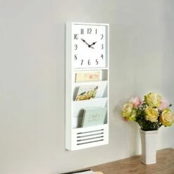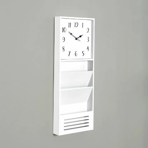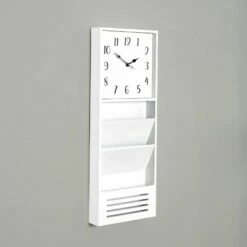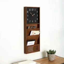 Organize your mail and your time with this Shutter Wall Clock with Organizer. It features 3 handy mail slots to organize your family’s mail by recipient, outgoing and incoming mail, or even by date received. Great to display in your home office or entryway. Made from:MDFMeasurements:10″W x 2-1/4″D x 26-1/2″HNotes:Ready to hang