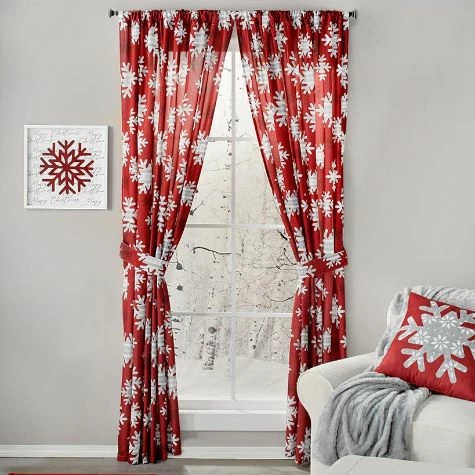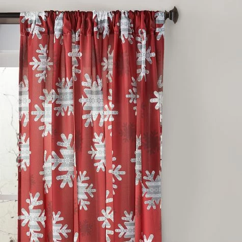 Give your window treatment a seasonal touch for the holidays with this Snowflake Window Panel. It features an all-over print snowflakes on a red background. Made from: PolyesterMeasurements: 52″W x 63″L52″W x 84″LCare: Machine careNotes: ImportedSold individually; 2 panels shown