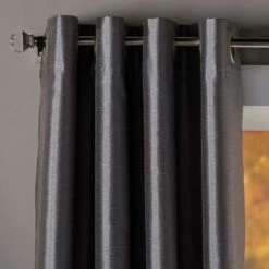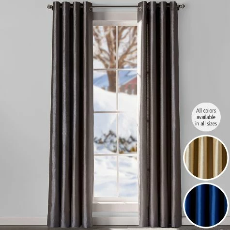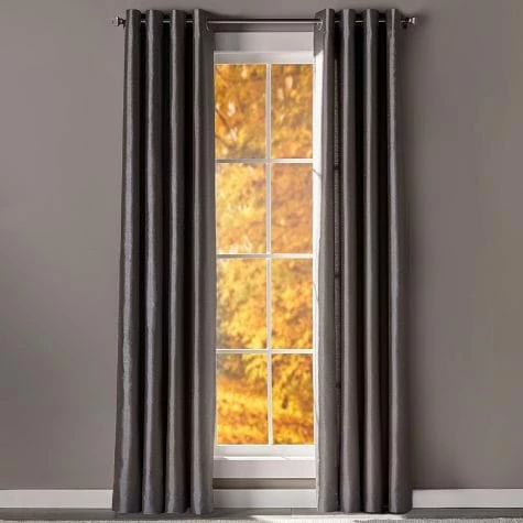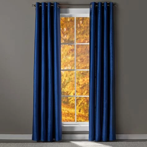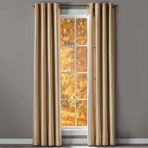 Keep out unwanted light with these Solid Faux Silk Blackout Curtains. The stylish panels will add a sophisticated touch to any room of your home. Grommets along the top make them easy to hang. Sold as a single panel. Made from: PolyesterMeasurements: 52″W x 63″L or 52″W x 84″LCare: Machine careNotes: Imported