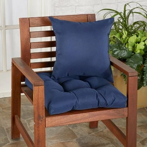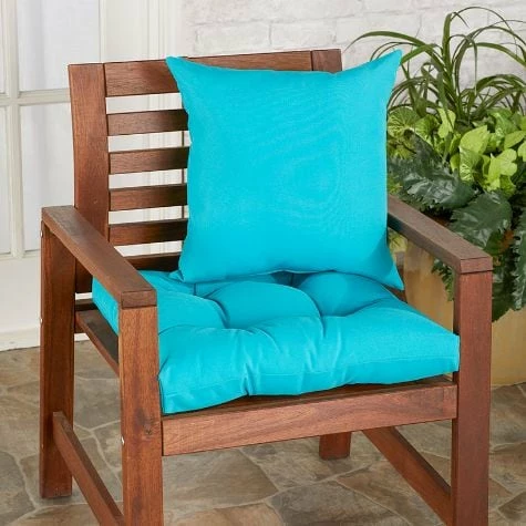 Refresh your garden furniture with new cushions from the Solid Outdoor Cushion Collection. Cushions are available to fit 6 different types of furniture. A 16″ sq. Throw Pillow is also part of the collection. Seat19″ sq. x 3-1/2″HPolyester with polyfillImportedChaise Lounge25″W x 72″D x 5″HPolyester with polyfillImportedHigh Chair23-1/2″W x 45″D x 4″HPolyester with polyfillImportedBench44″W x 16″D x 3″HPolyester with polyfillImportedWicker Seat20″W x 18-1/2″D x 5″HPolyester with polyfillImportedWicker Settee39″W x 17-1/2″D x 4″HPolyester with polyfillImportedThrow Pillow16″ sq. Polyester with polyfillImported