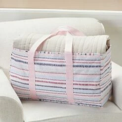 Organize your living space using this Spring Multifunctional Tote. Its stylish print adds color and life to a bathroom, closet, playroom or any other room. It can also be used to carry your gear to the fitness center or your groceries from the supermarket. Has long handles for easy carrying. Made from: Acrylic Measurements:22″W x 10″D x 12″HNotes:Imported