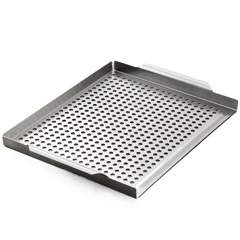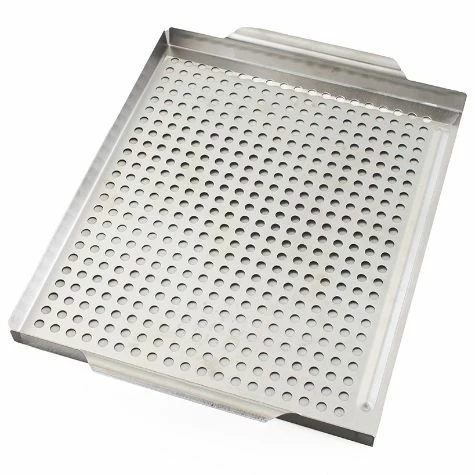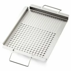 Grill anything from meats to veggies with the help of this Stainless Steel Grill Topper. It’s perfect for anyone who loves to grill outside. Both the Perforated and Solid & Perforated choices feature handles for easy transport from the grill to the kitchen. Made from:Stainless steelMeasurements:Perforated, 11-5/8″W x 15-3/4″D x 1″H, overallSolid & Perforated, 10-3/8″W x 18-1/2″D x 1″H, overall