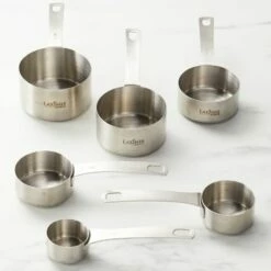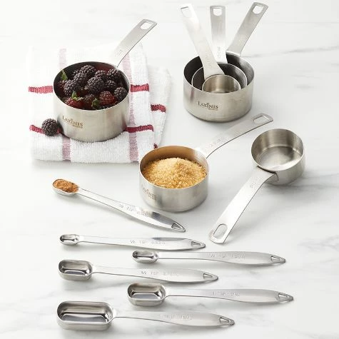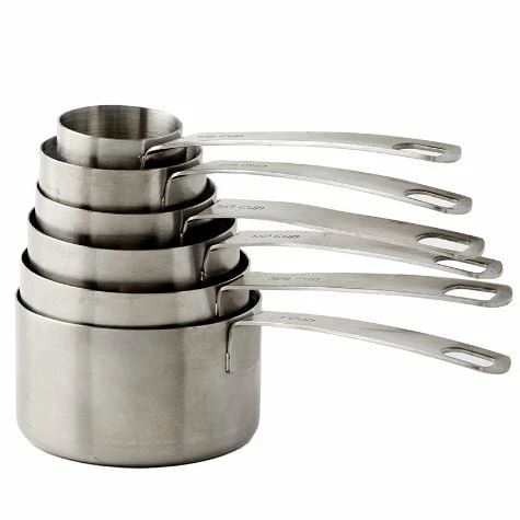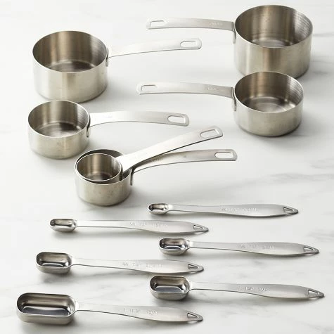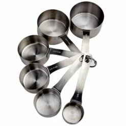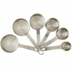 Use the precise amount of each ingredient in your recipe with these Stainless Steel Measuring Spoons or Cups. Each of the measuring spoons features measurements in US and metric sizes clearly engraved on the handle. Will never rust! Made from: Stainless steelSpoon set includes:1/8 tsp.1/4 tsp.1/2 tsp.3/4 tsp.1 tsp.1 Tbsp. Cup set includes:1/8 cup1/4 cup1/3 cup1/2 cup3/4 cup1 cup Notes: Top rack dishwasher safe