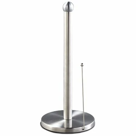 Pull off only as many sheets as you need with this Stainless Steel Paper Towel Holder. Its unique design features an arm that holds down the number of sheets you want and keeps the roll from releasing too many sheets. Made from: Stainless steel and polypropyleneMeasurements: 7-7/8″ dia. x 13-3/4″HNotes: Easy assembly required