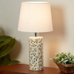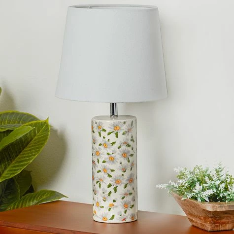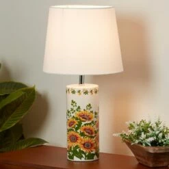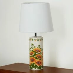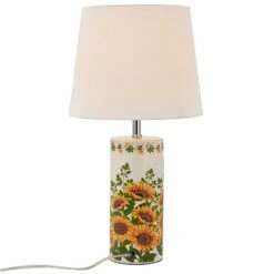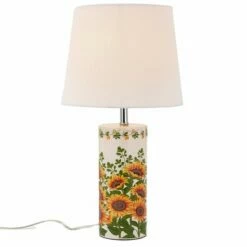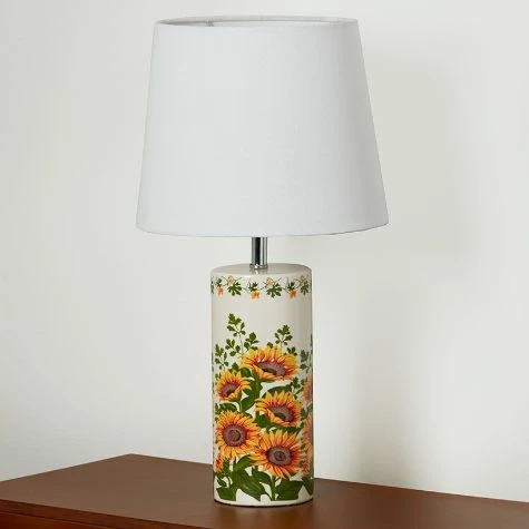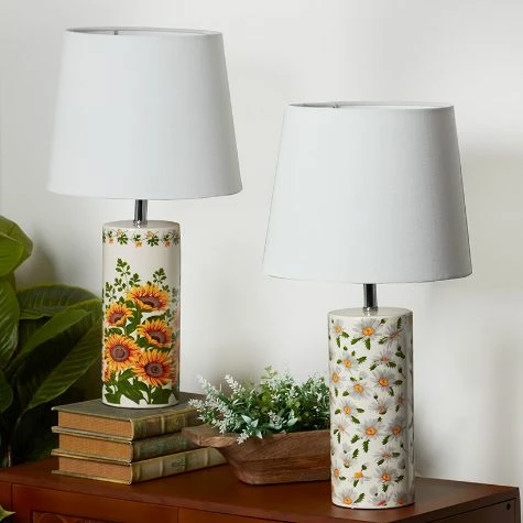 Light up any room of your home with this Sunflowers or Daisies Table Lamp. Each style features a white linen shade and a ceramic base decorated with colorful flowers. Plugs in. Made from: Ceramic and linenMeasurements: 10″ dia. x 18″H