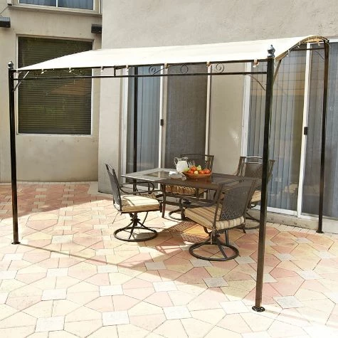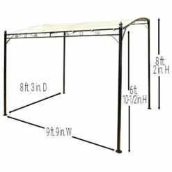 Enjoy your patio more with the added shade and privacy from this Sunshade Awning Gazebo. Its classic look coordinates nicely with most decor styles. Includes 8 ground stakes. This item cannot be shipped to P.O. boxes and APO/FPO addresses. Made from:Steel and polyesterMeasurements:117″W x 99″D x 98″H at the high side and 82-1/2″H (including finial) at the low side Notes:ImportedAssembly required; assembly hardware included
